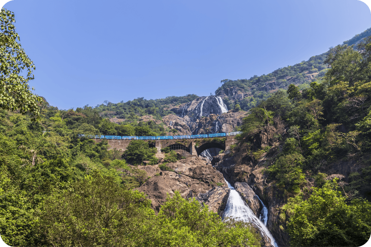 A breathtaking four-tiered waterfall on the Goa-Karnataka border, surrounded by lush greenery, ideal for trekking and nature photography.